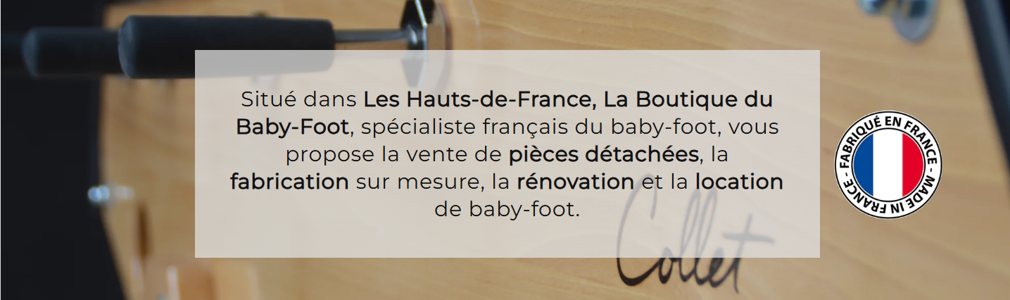 Conçus et fabriqués dans notre atelier, nos baby-foot allient tradition et robustesse.
