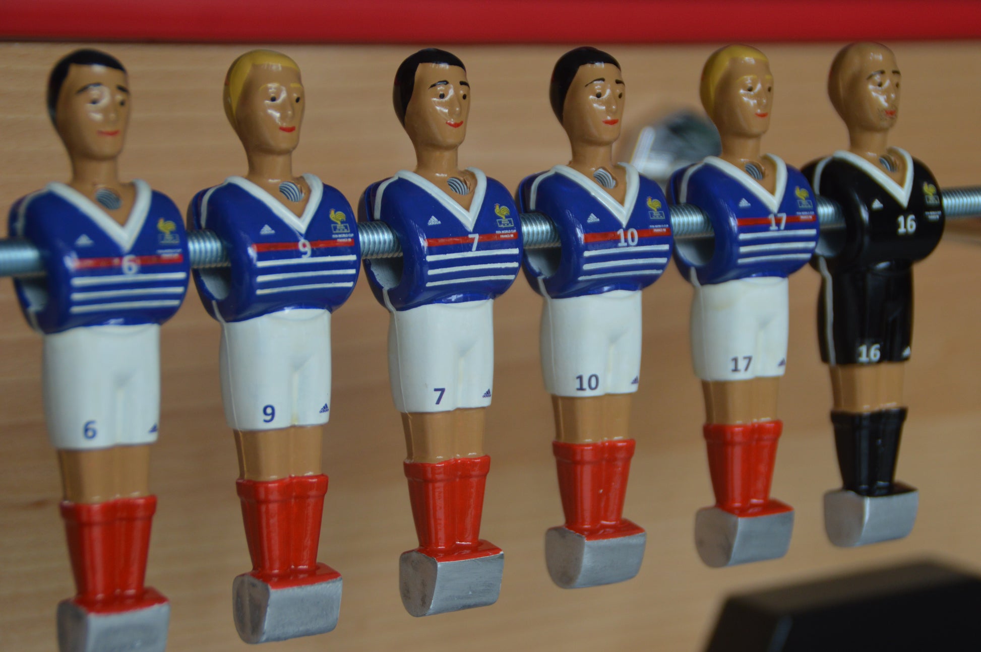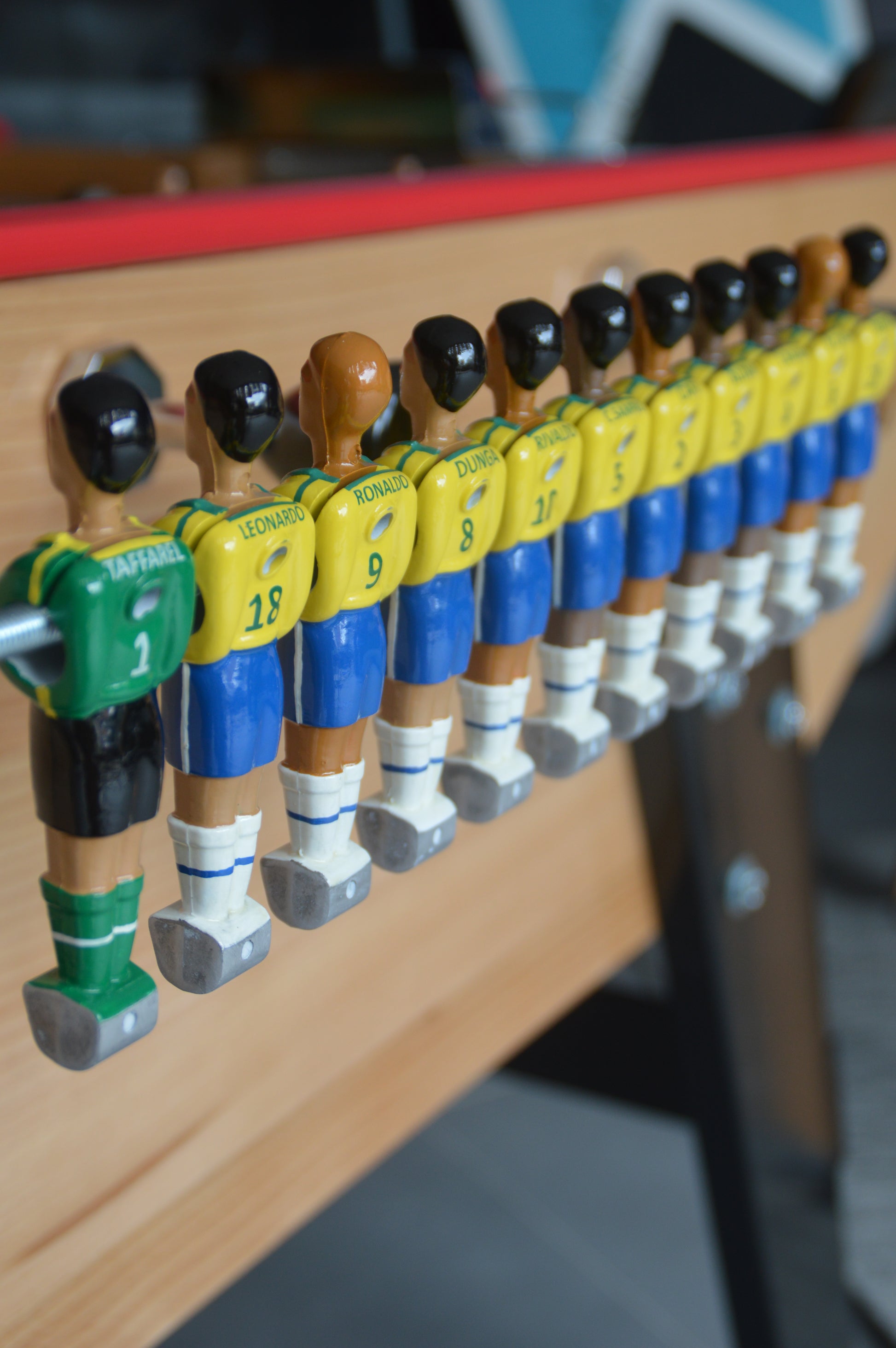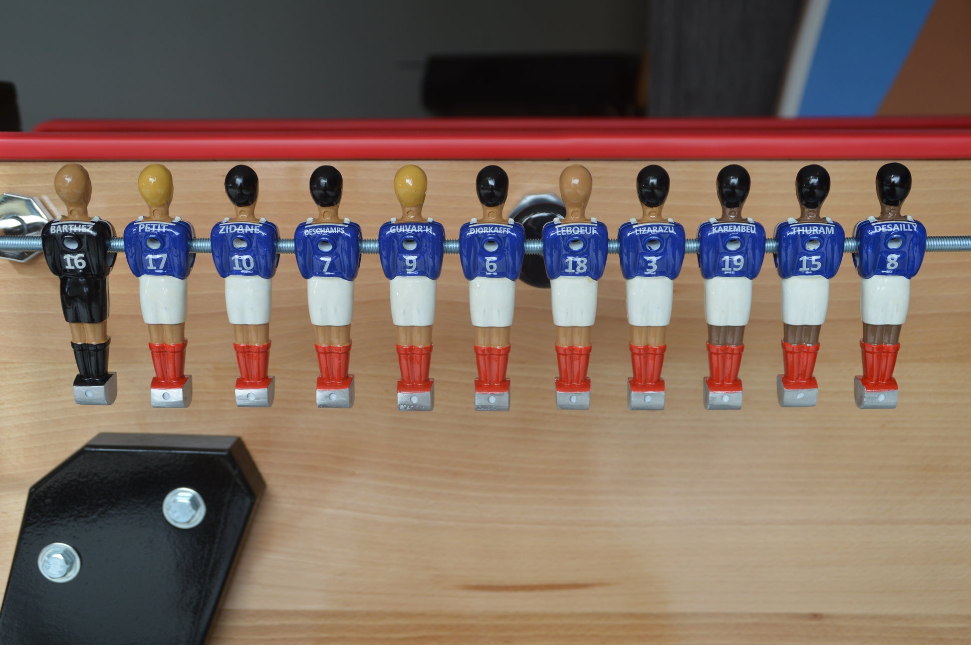 Que ce soit des couleurs classiques ou un ensemble personnalisé avec les maillots de votre équipe préférée. C'est LA touche finale dans la rénovation d'un baby-foot. Vous n'avez qu'à démonter les joueurs des barres (si possible) et on s'occupe du reste !